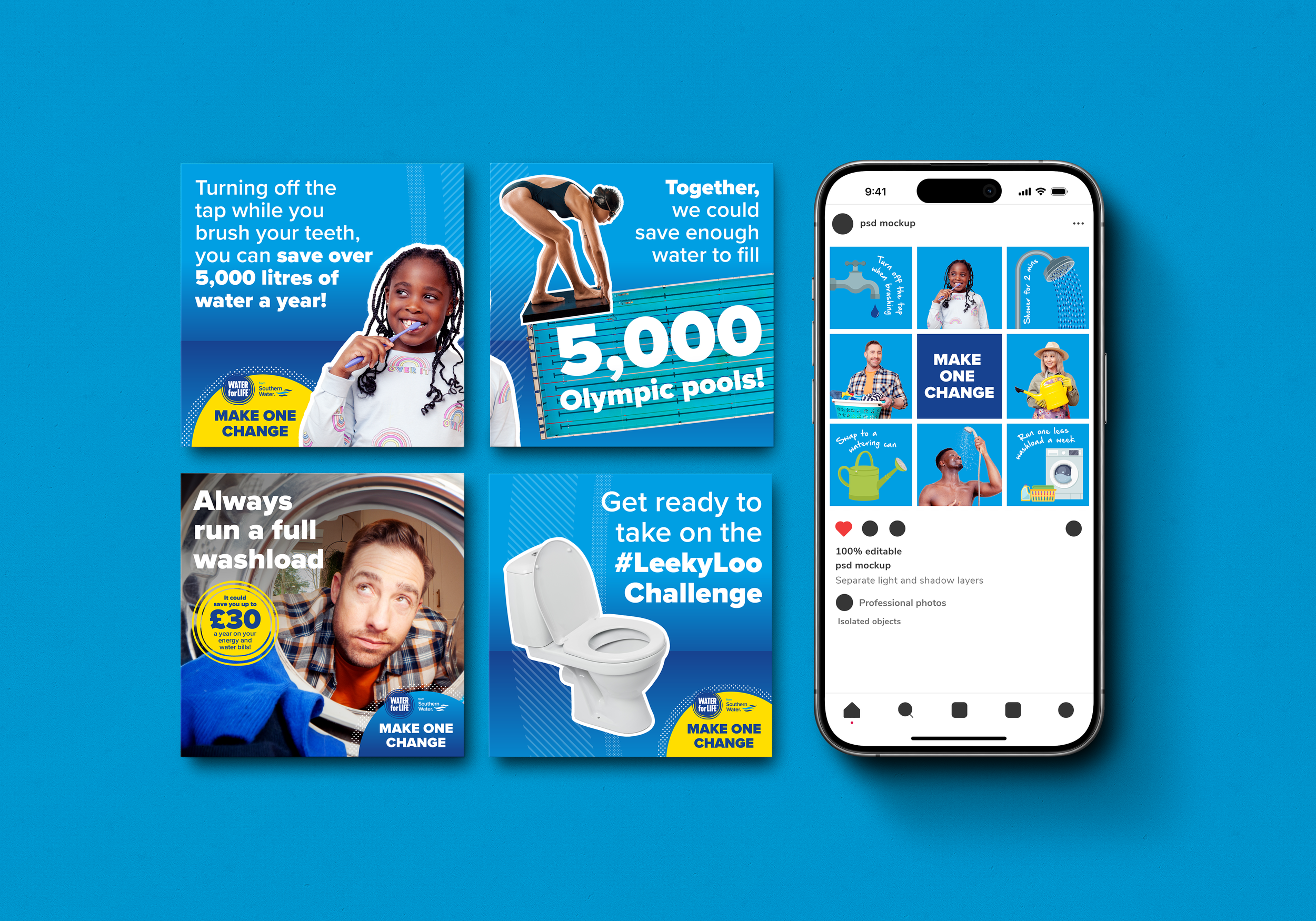 To drive behaviour change effectively, we made the campaign easy to understand and engaging. Speaking the language of our audience, we highlighted the personal benefits of water conservation. Balancing the desire for improvement with the realities of everyday life, we presented a positive and confident message.